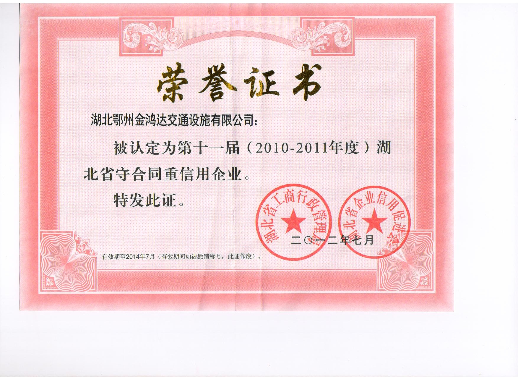 湖北省守合同重信用企业