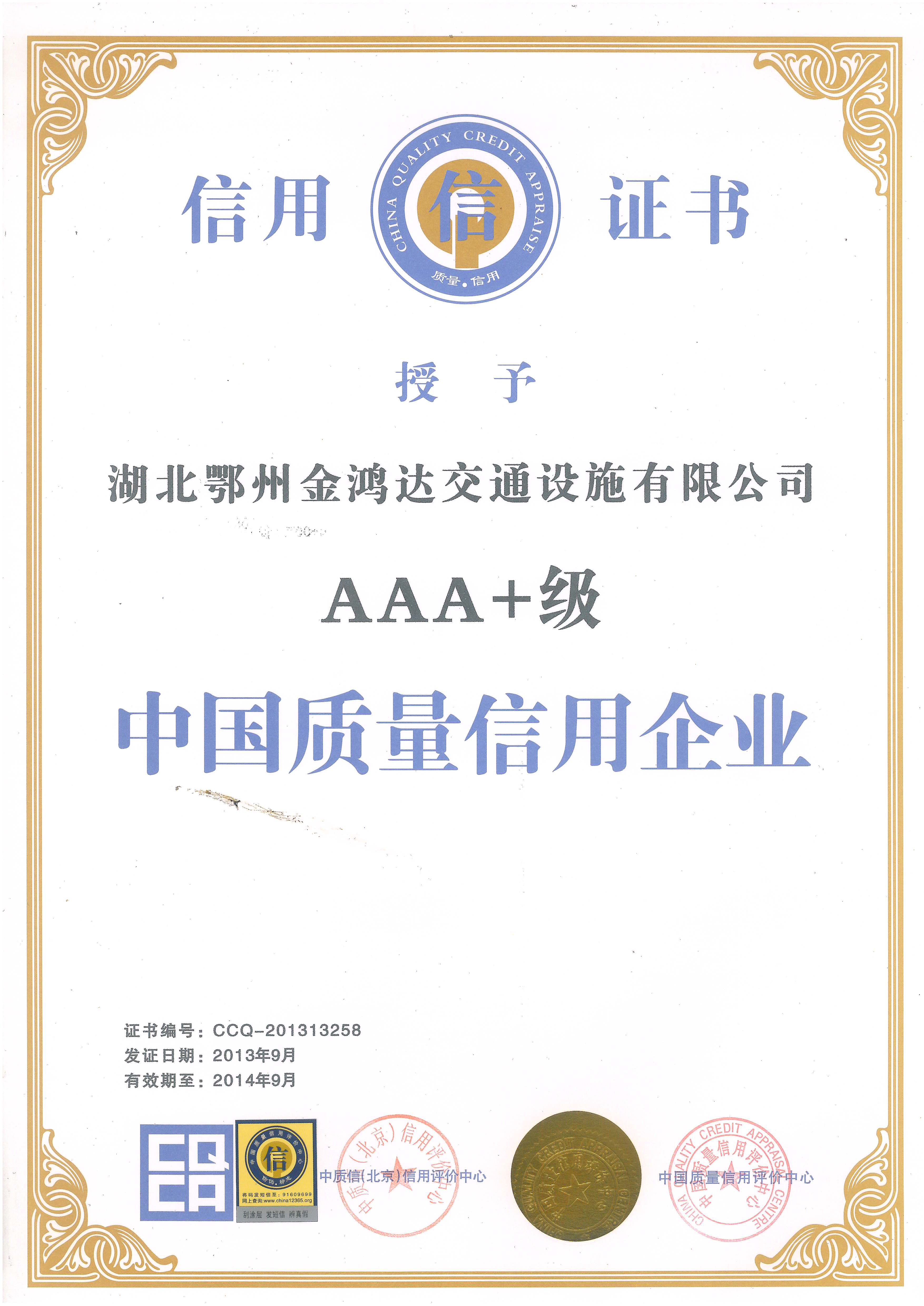 3A+质量认证证书